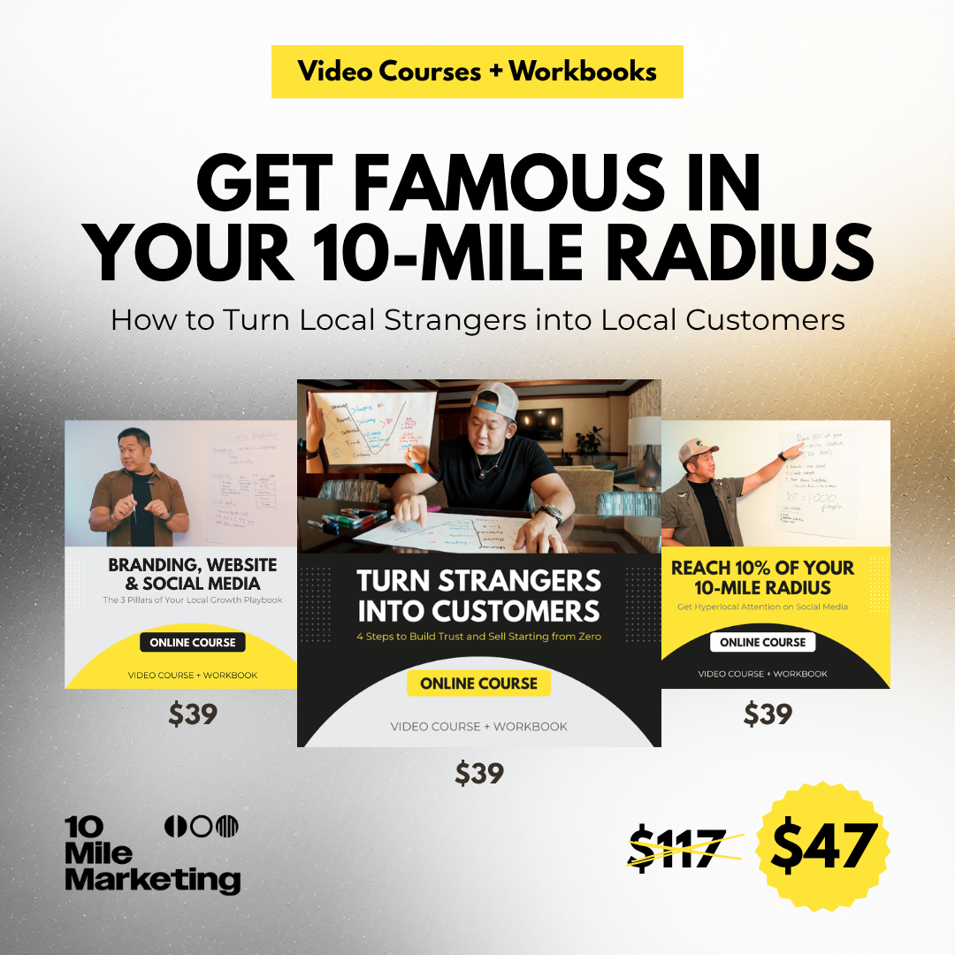 You don’t need to go viral nationwide — you just need the people around you to know you, trust you, and buy from you. This bundle combines everything you need to build momentum in your 10-mile radius: how to get attention, how to turn it into trust, and how to convert that trust into long-term customers.